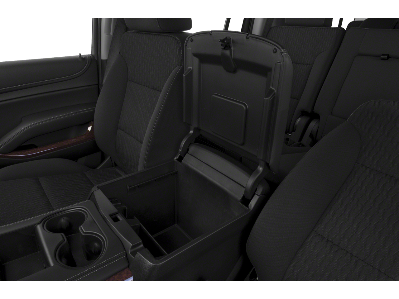 - Console, floor with storage area, cup holders